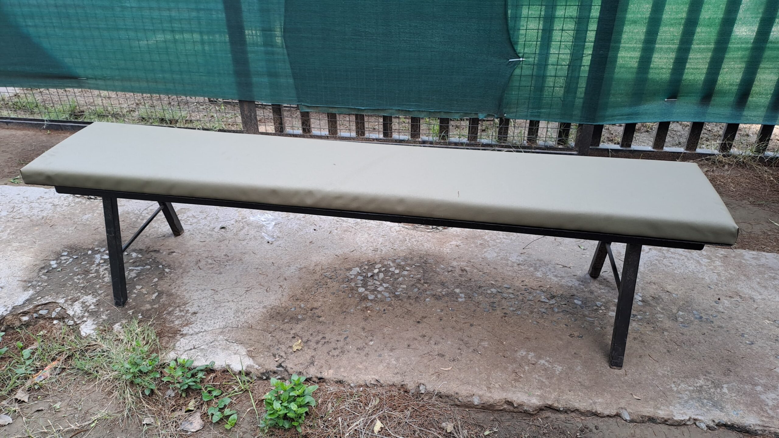 2m x 0.38 x 0.4 high sitting bench with a 40mm sponge on 18mm plywood covered with 400gsm ripstip canvas olive color